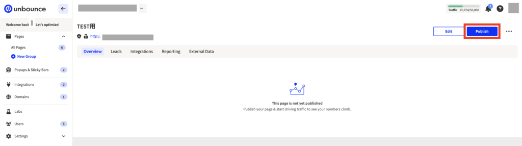 unbounceから提供されているドメインを登録しておくと、ドメインにこだわりがない場合はLP用にもテスト用にも活用できるのでおすすめです。