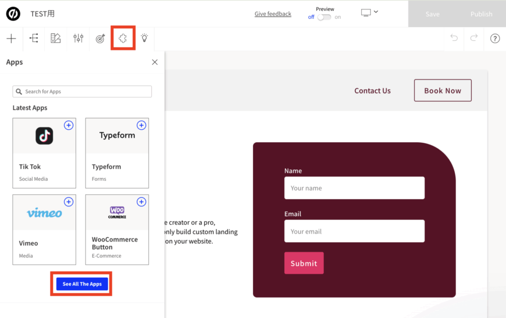 1.編集画面の上部メニューにあるAppsアイコンを選択し、左側サイドバー内の「See All The Apps」を選択