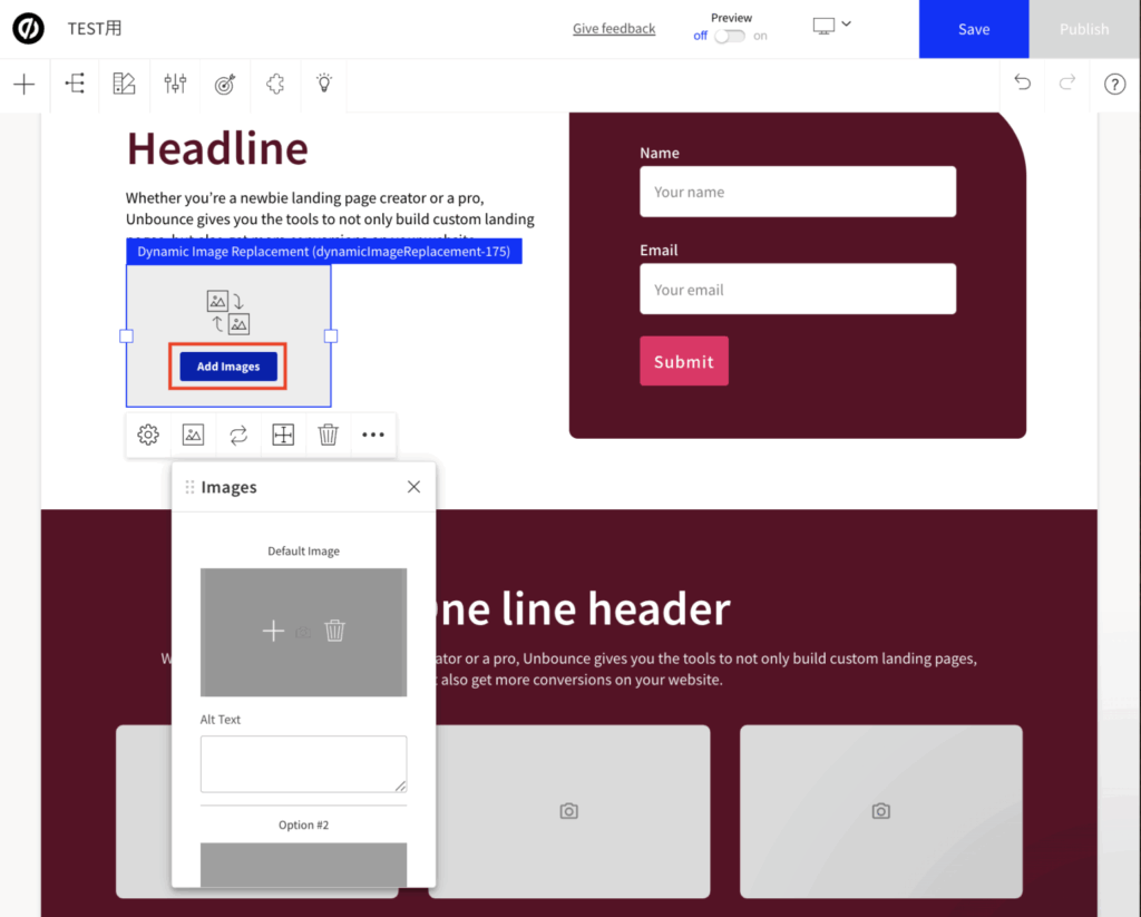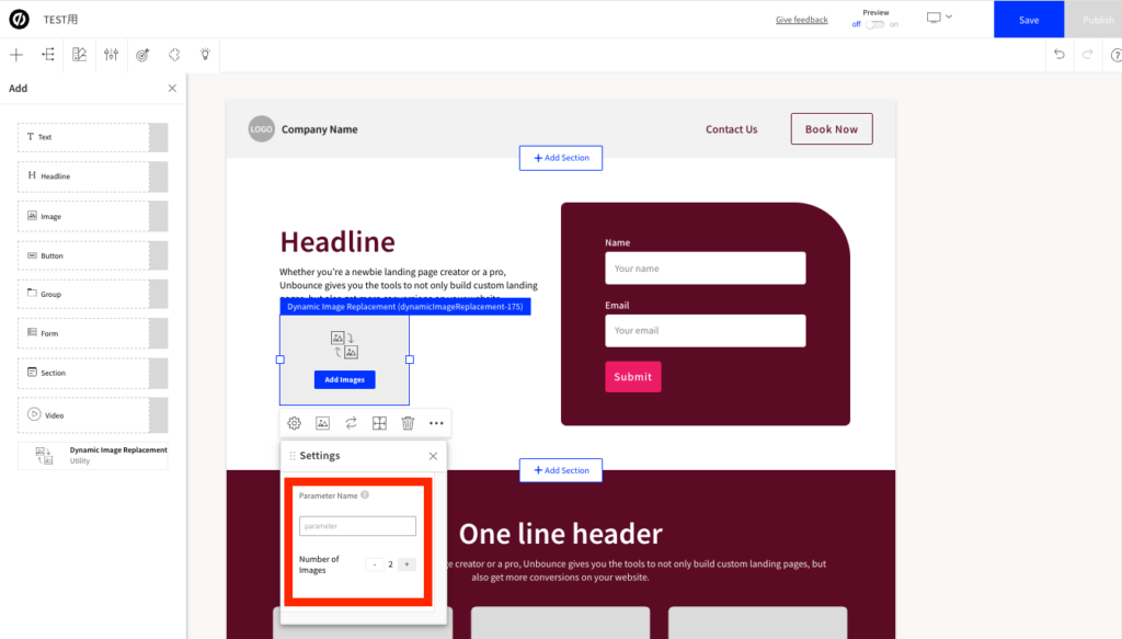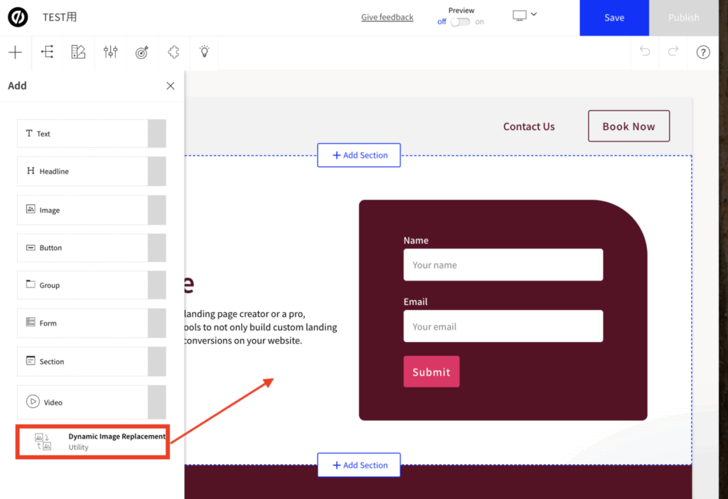 3.Addに「Dynamic Image Replacement」が追加されるので、LPの画像を追加したい場所にどラック&ドロップ