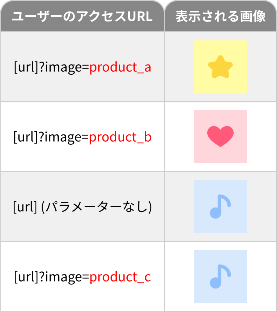 URLパラメータに応じて、LP内の画像を自動的に切り替える機能です。