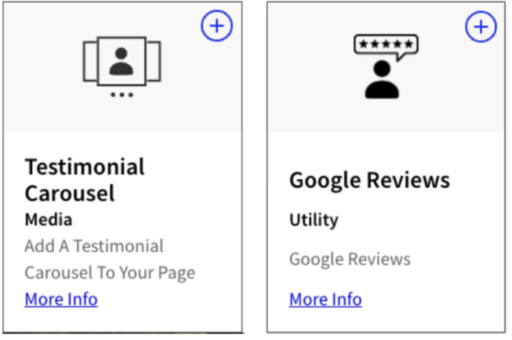 BtoBなら「Testimonial Carousel」で導入企業の担当者の声を顔写真付きで掲載し、「他社も使っている」という安心感を与えてCVへのハードルを下げます。