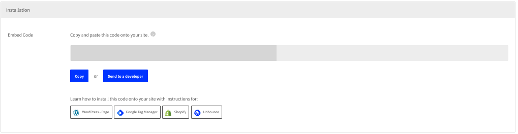 7.設定画面のInstallation項目の「Copy」を選択し、コードをコピーします。