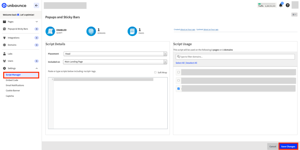 • Script Usage:スティッキーバーを設置するページのドメインを選択